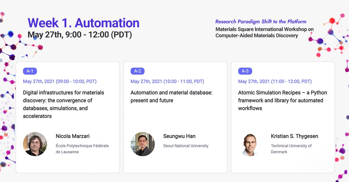 버추얼랩에서는 “International Workshop on Computer-Aided Materials Discovery, Research Paradigm Shift to the Platform”을 주제로 2021년 5월 28일부터 5주간 매주 금요일…