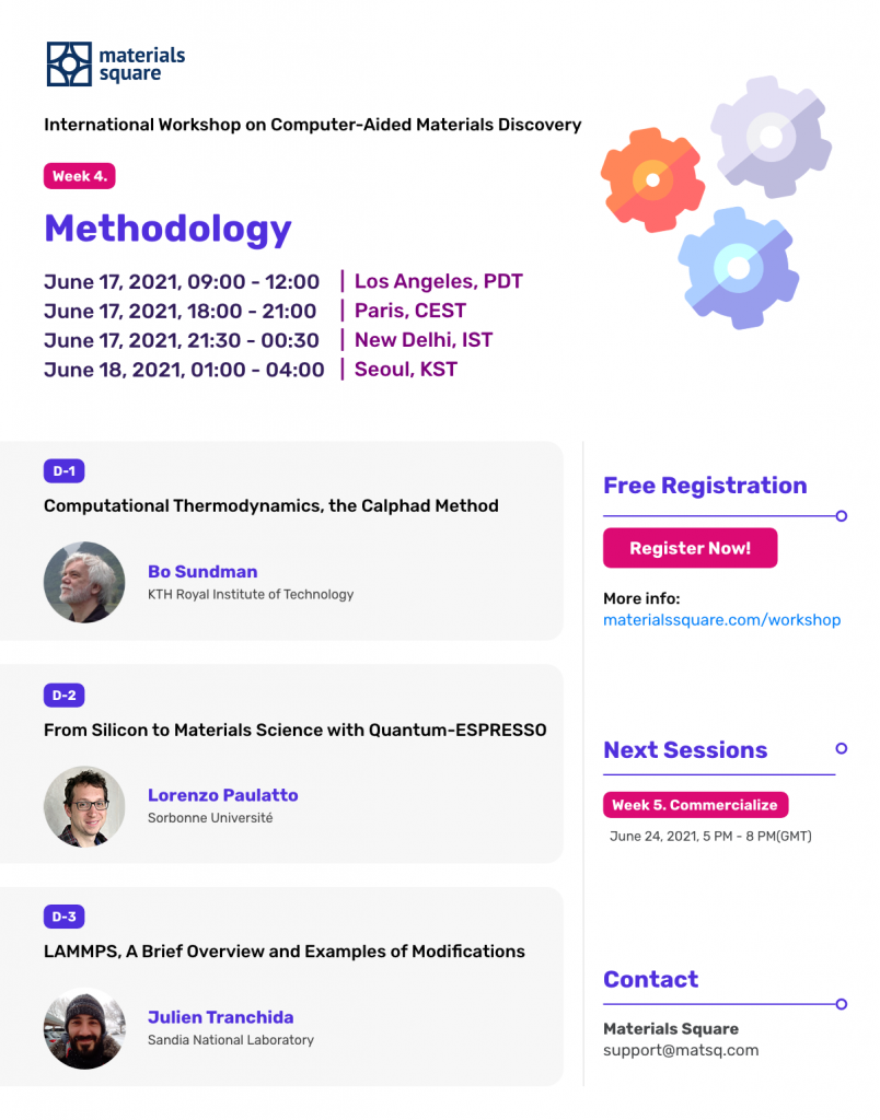 CALPHAD 기법은 슈퍼 합금이나 고엔트로피 합금 등의 새로운 재료를 설계하는 가장 오래되고도 기능적인 접근법입니다. 오픈 칼파드 개발자인 보 선드만(Bo Sandman) 교수는 단항 데이터베이스 개선, 무료 데이터베이스 개발, 새로운 재료와 프로세스 개발을 위한 칼파드의 시뮬레이션에 대해 몇 가지 작업 사례를 공유할 예정입니다.